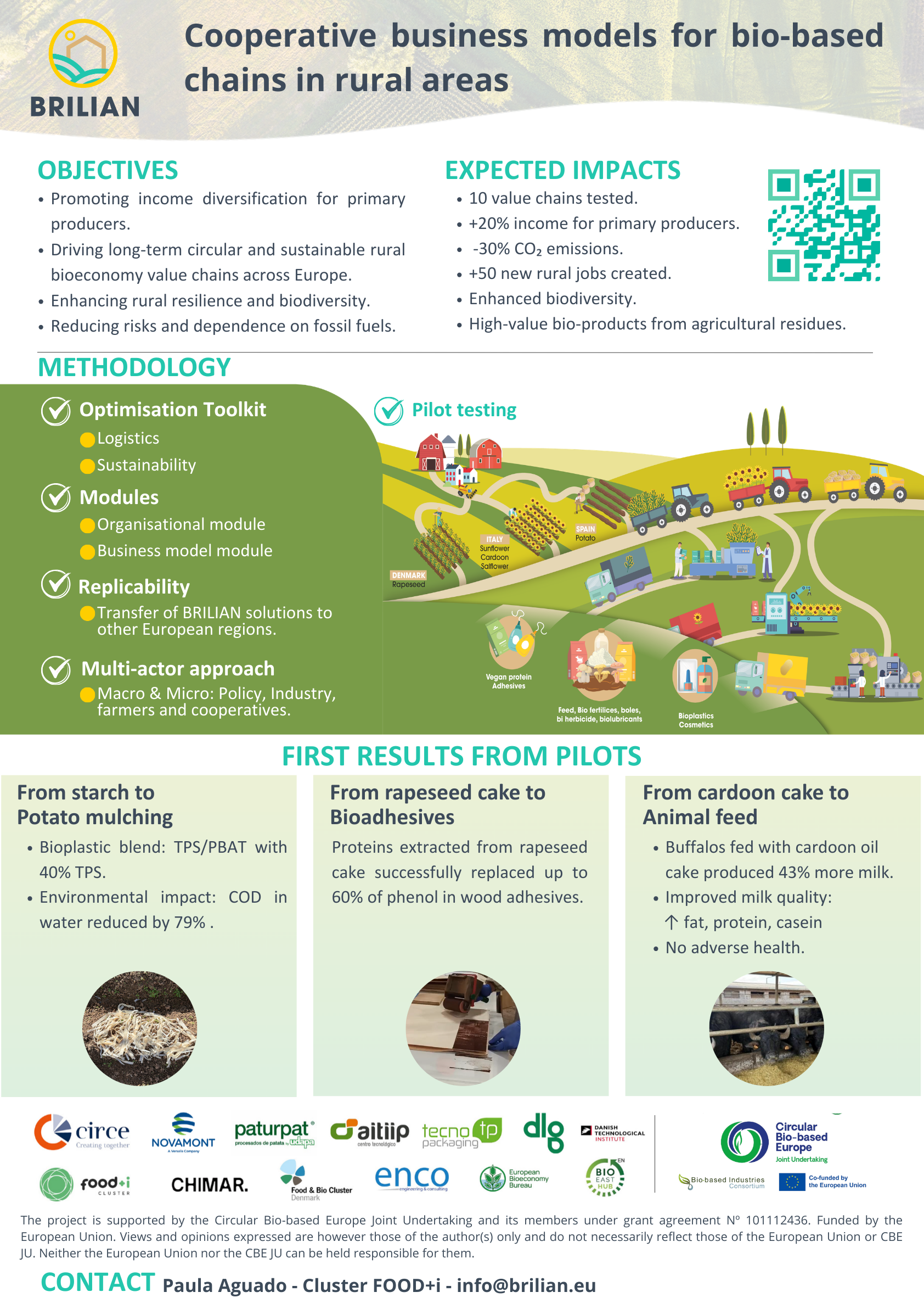 The BRILIAN project has been conceived to support the adoption of sustainable and cooperative business models in rural areas, to incorporate agricultural by-products valorisation, seeking to increase and diversify primary producers’ income.