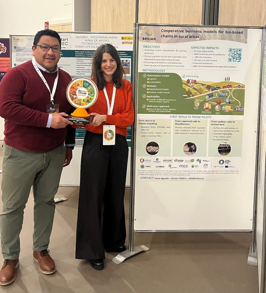 This award reinforces BRILIAN’s positioning as a key initiative to accelerate the bioeconomy in Europe, demonstrating that agricultural by-products can be transformed into new industrial opportunities, generating added value in rural areas and strengthening the role of primary producers as active actors in bio-based value chains.